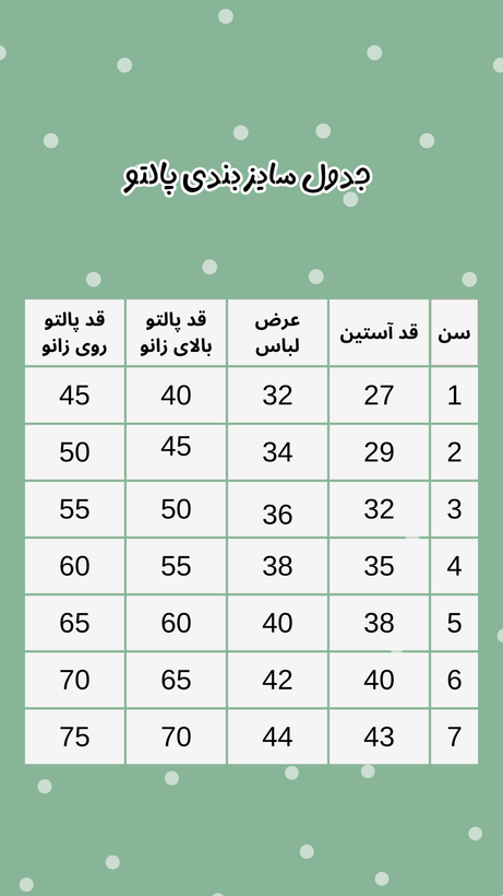 ✅️اسلاید آخر جدول سایز بندی رو ملاحظه بفرمایید.