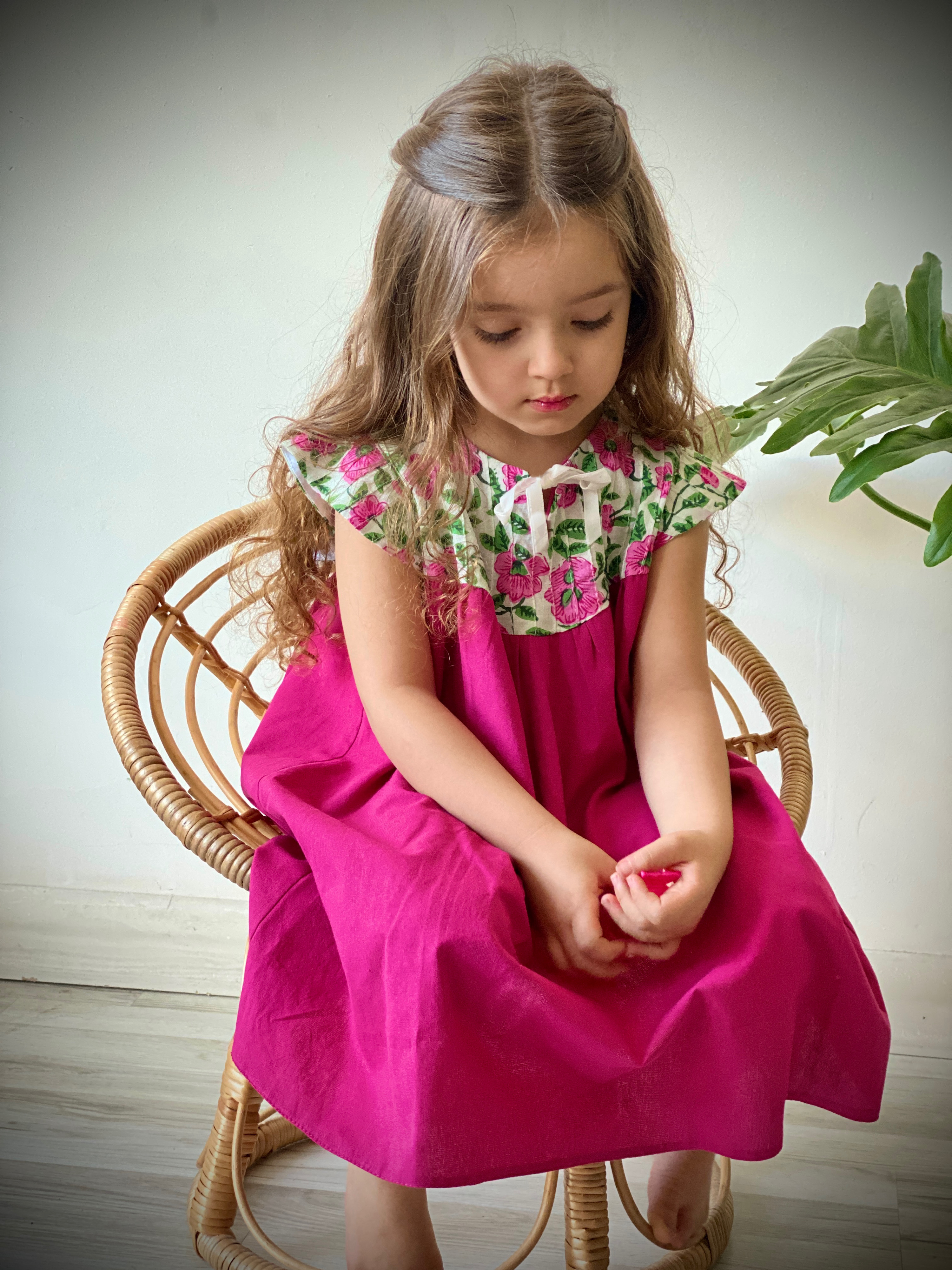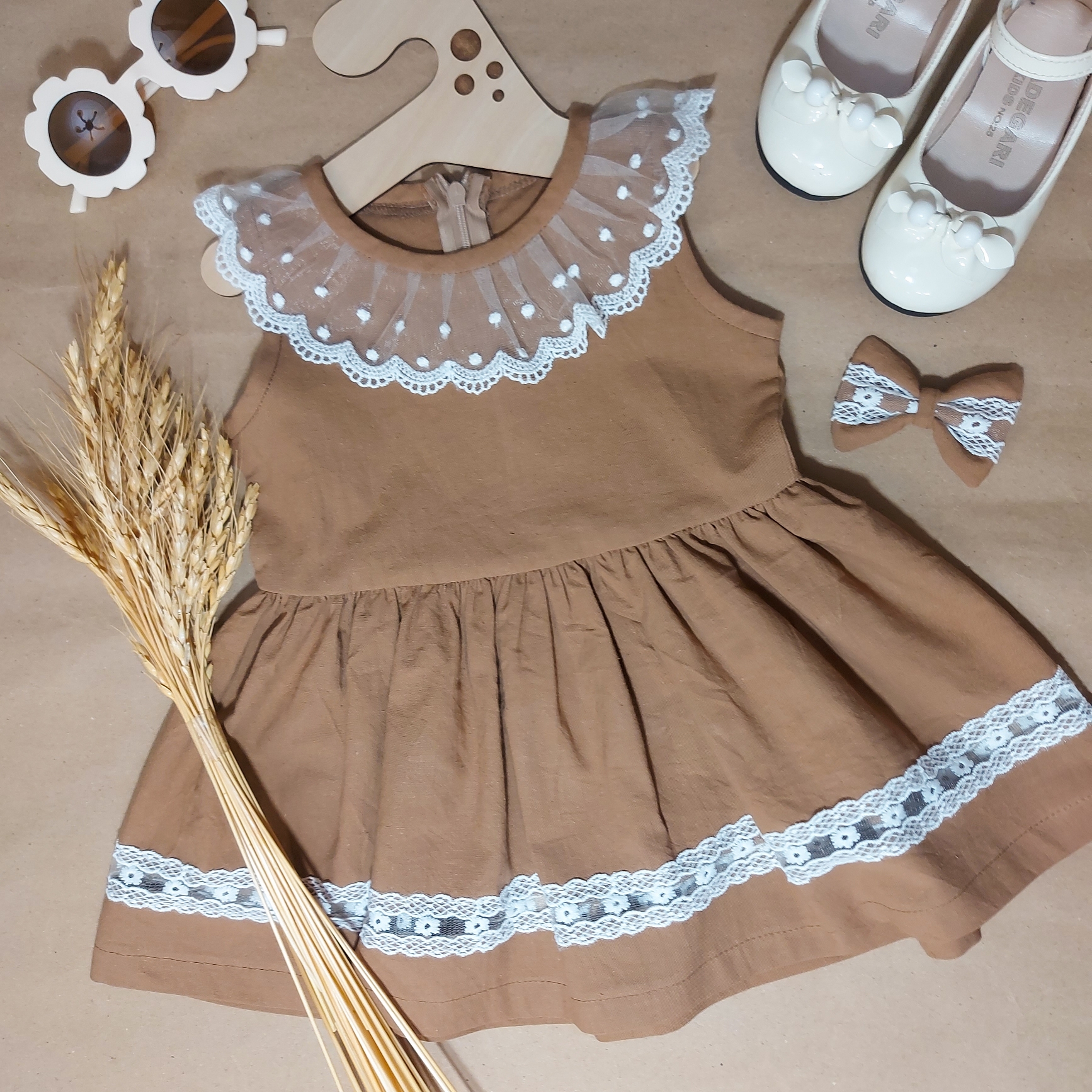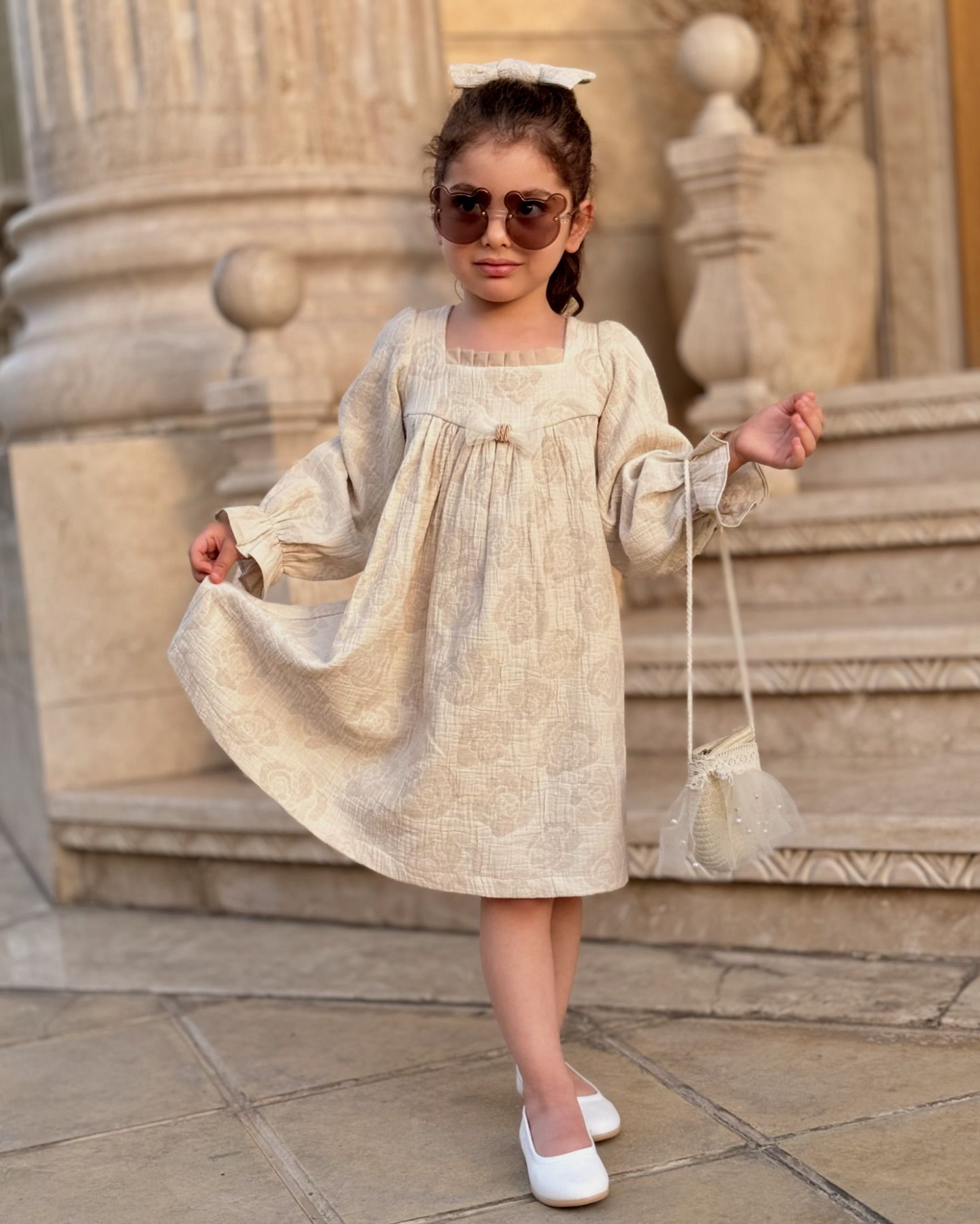 پیراهن دخترانه ست با گلسر مدل پاپیون