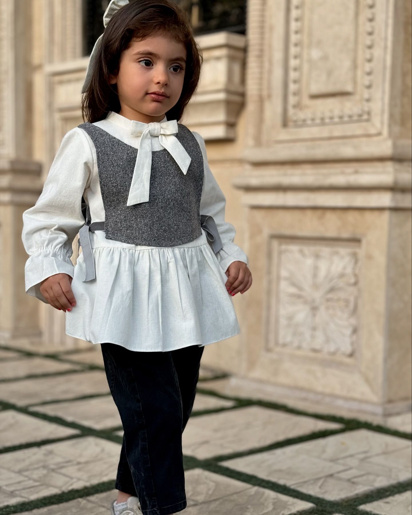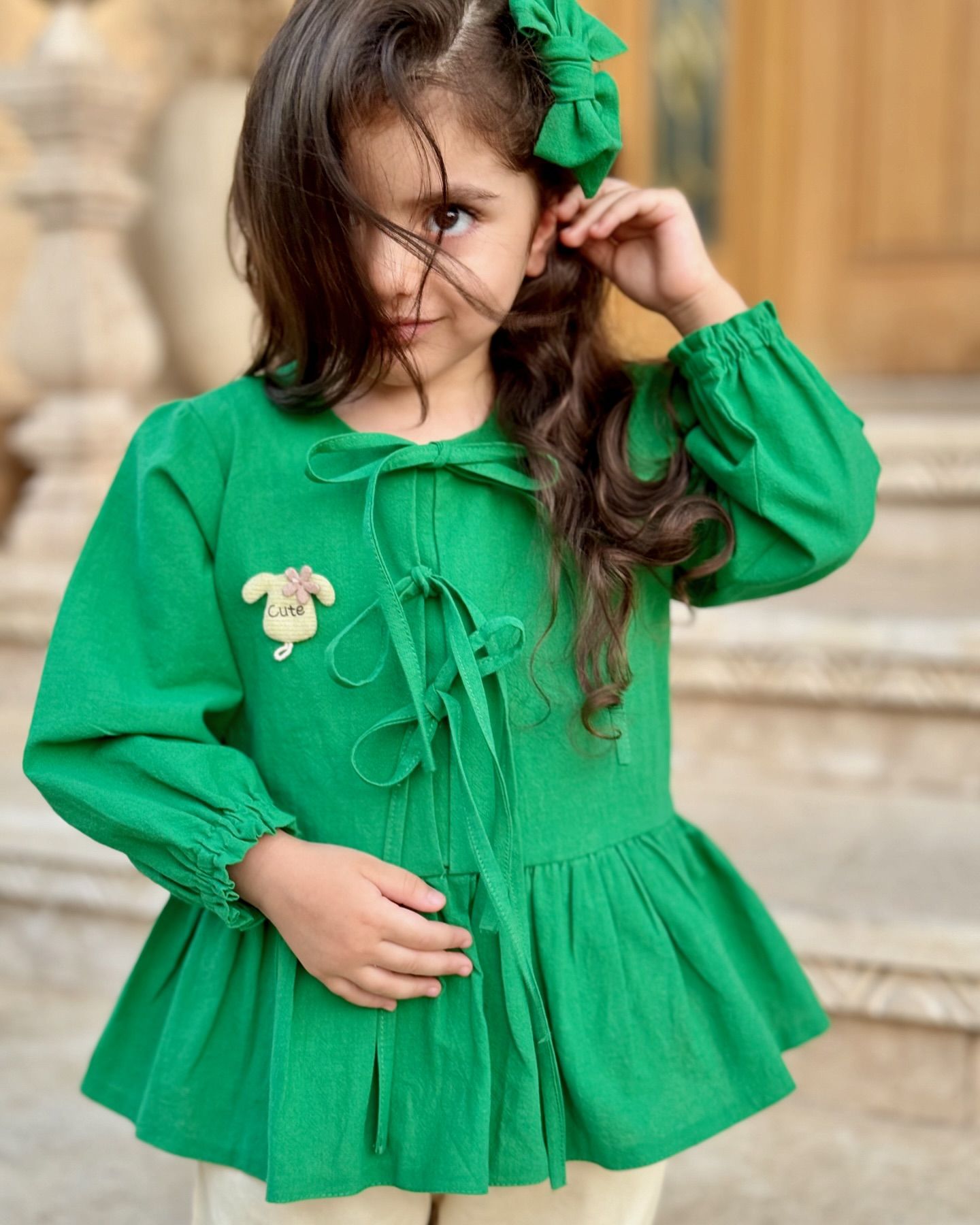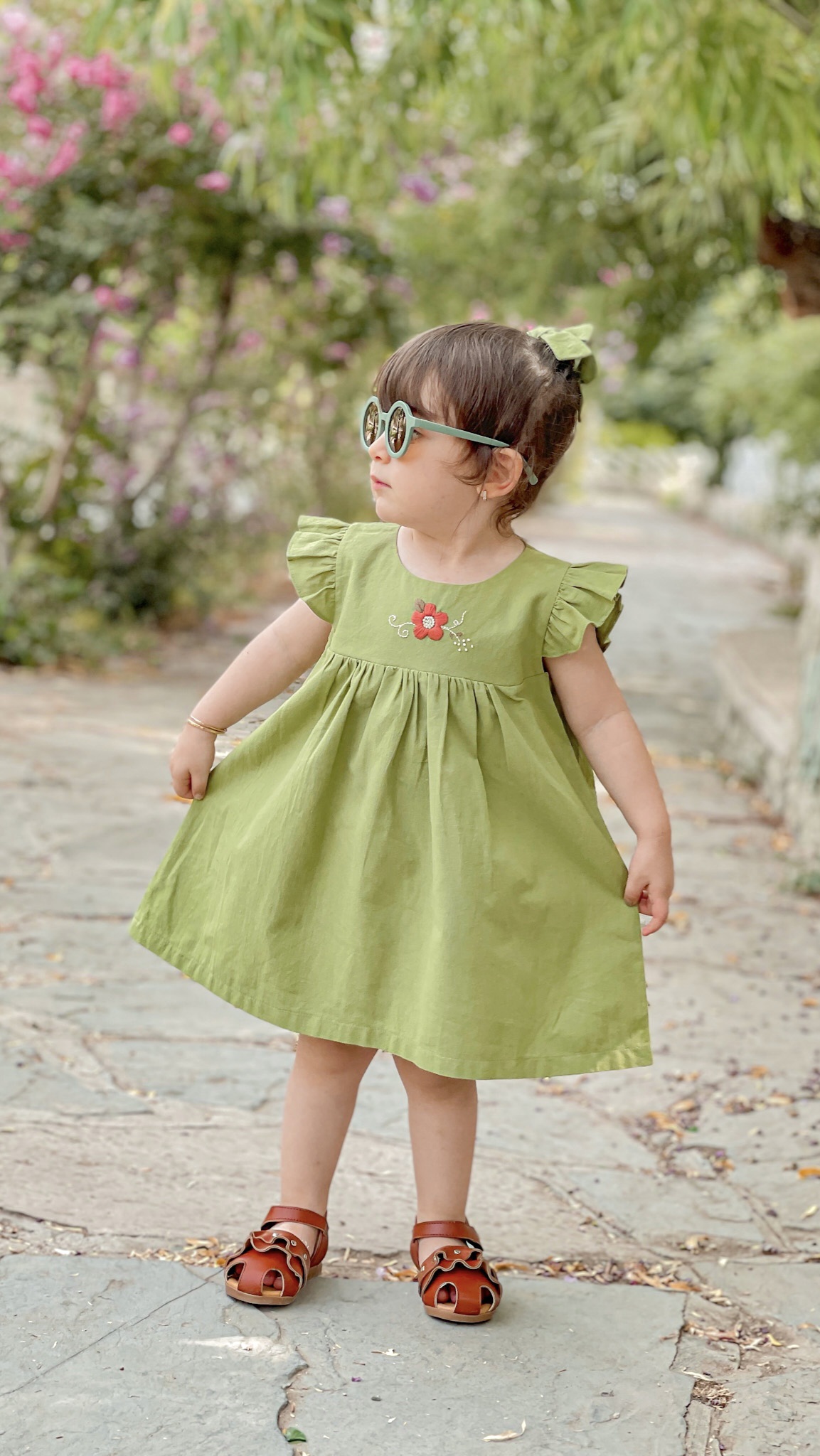 پیراهن دخترانه ست با گلسر مدل پاپیون